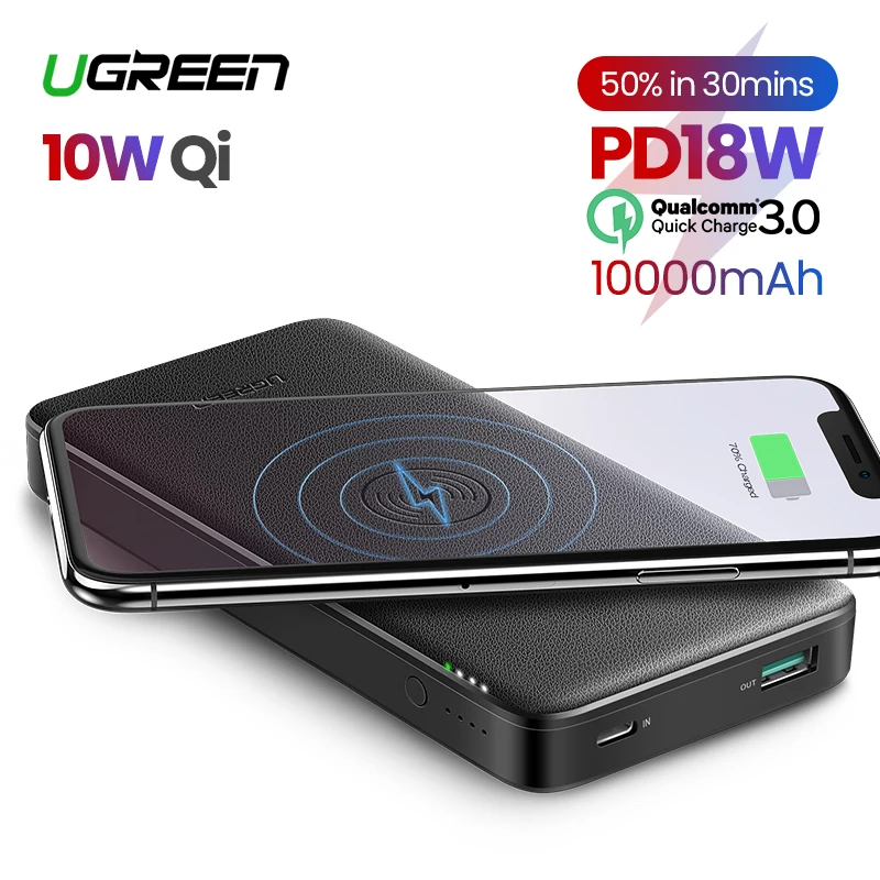 Greatest Ugreen Power Bank 10000mAh Portable Fast Charger Quick Charge 4.0 3.0 QC3.0 Qi Wireless Charging fo