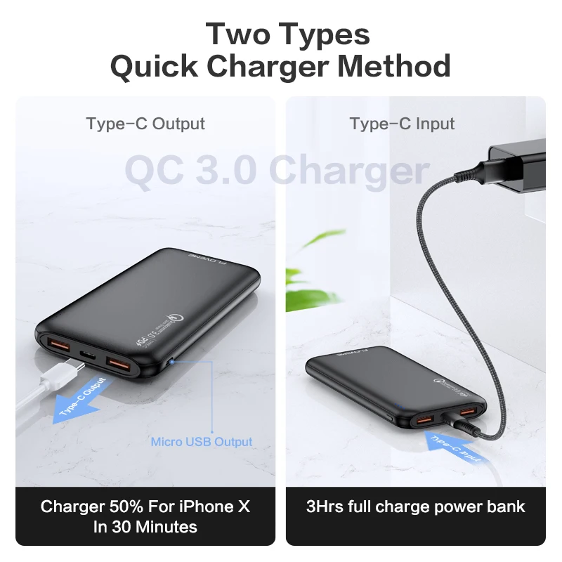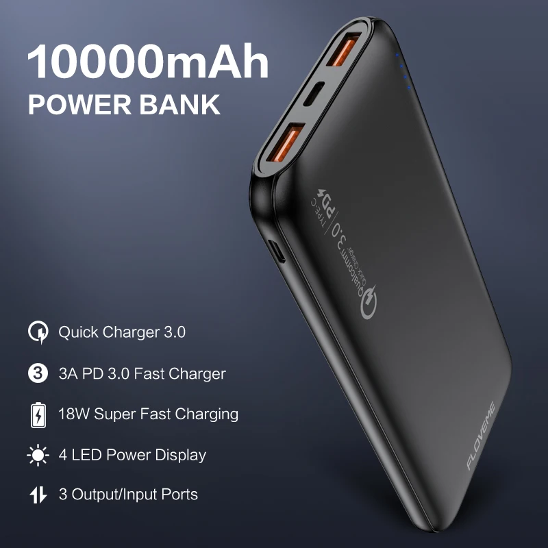 price cut FLOVEME QC 3.0 Power Bank 10000mAh Portable Charger Quick Charge Dual USB Output Power bank Mobile