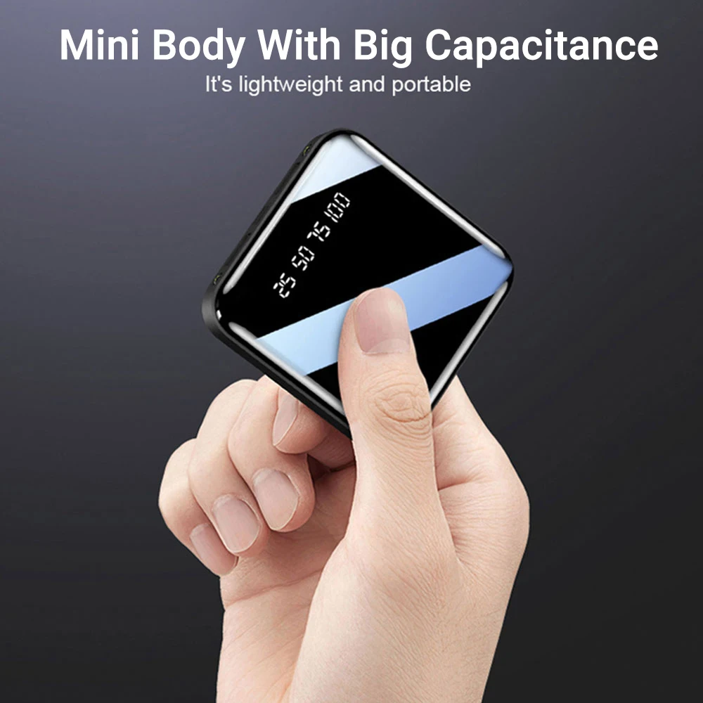 Ideal 20000mAh Mini Power Bank For Xiaomi Phone 10000 mah Portable Charger LED Mirror Back Power Bank Ext